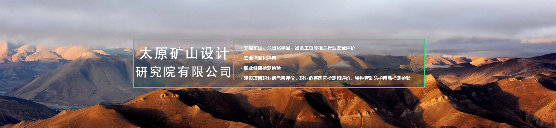 公司主要從事礦山采選尾工程設計、智能化及自動化礦山、建設綠色礦山、工程技術咨詢、規劃設計管理、施工勞務分包、土地規劃、地質災害治理服務、安全生產技術服務、軟件開發及測繪服務;煤礦、非煤礦山設計;煤礦、非煤礦山、危險化學品安全評價(業務范圍:煤炭開采業;金屬、非金屬及其他礦采選業;石油加工業,化學原料、化學品及醫藥制造業);非煤礦山、冶金等工商貿企業、危險化學品從業單位安全生產標準化評審;公共場所衛生、生活飲用水、公共場所集中中央空調通風系統的檢驗、檢測、評價;職業健康檢測檢驗;建設項目職業病危害評價、職業危害因素檢測與評價;安責險技術服務;業務培訓等工作。